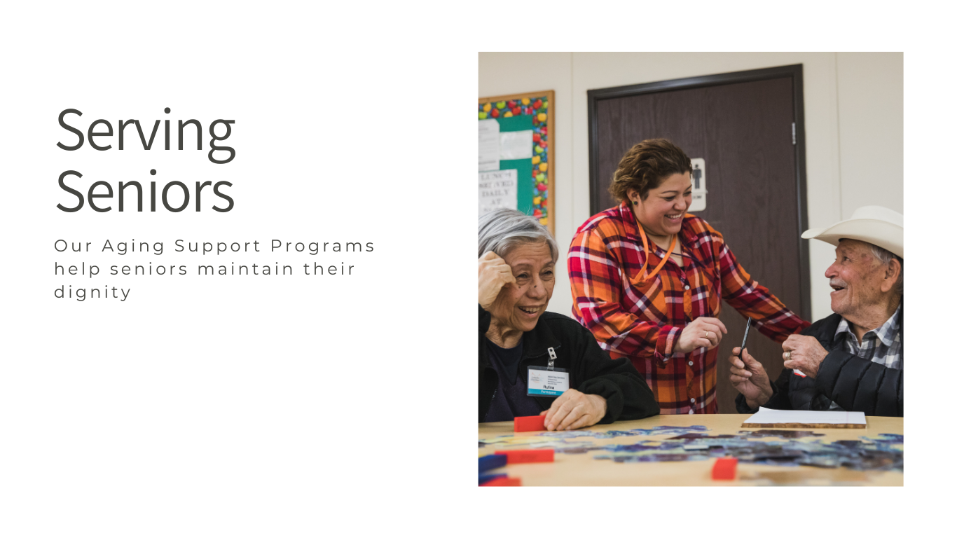 Every day people in our community count on us. Every person we help is vital to the strength of our community. They are our neighbors, friends, parents, children, and seniors. Yet each struggles with concerns about housing, food, isolation, and their future.