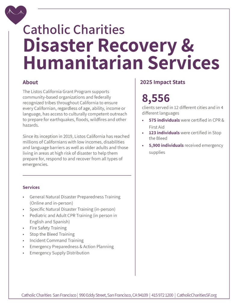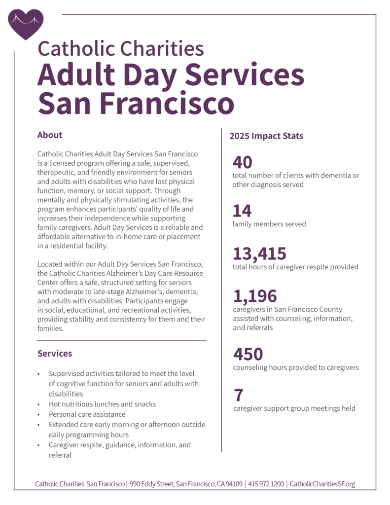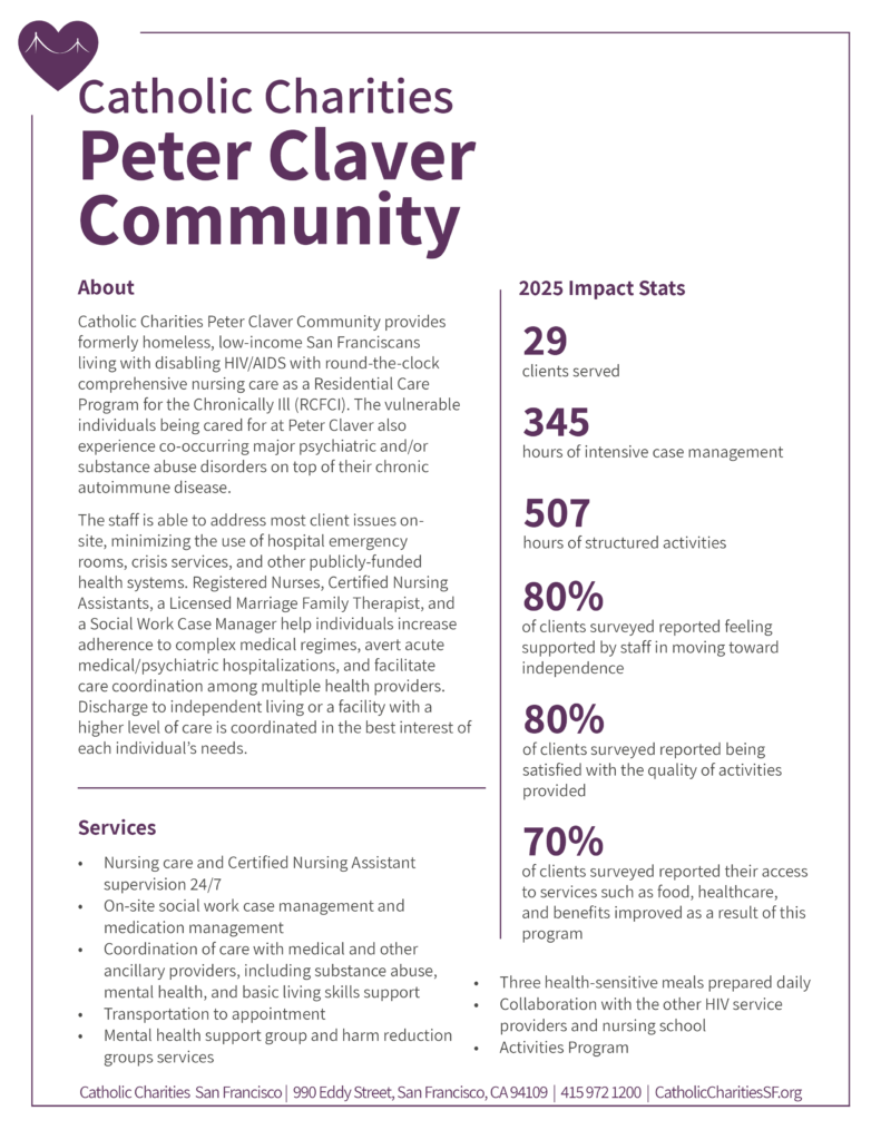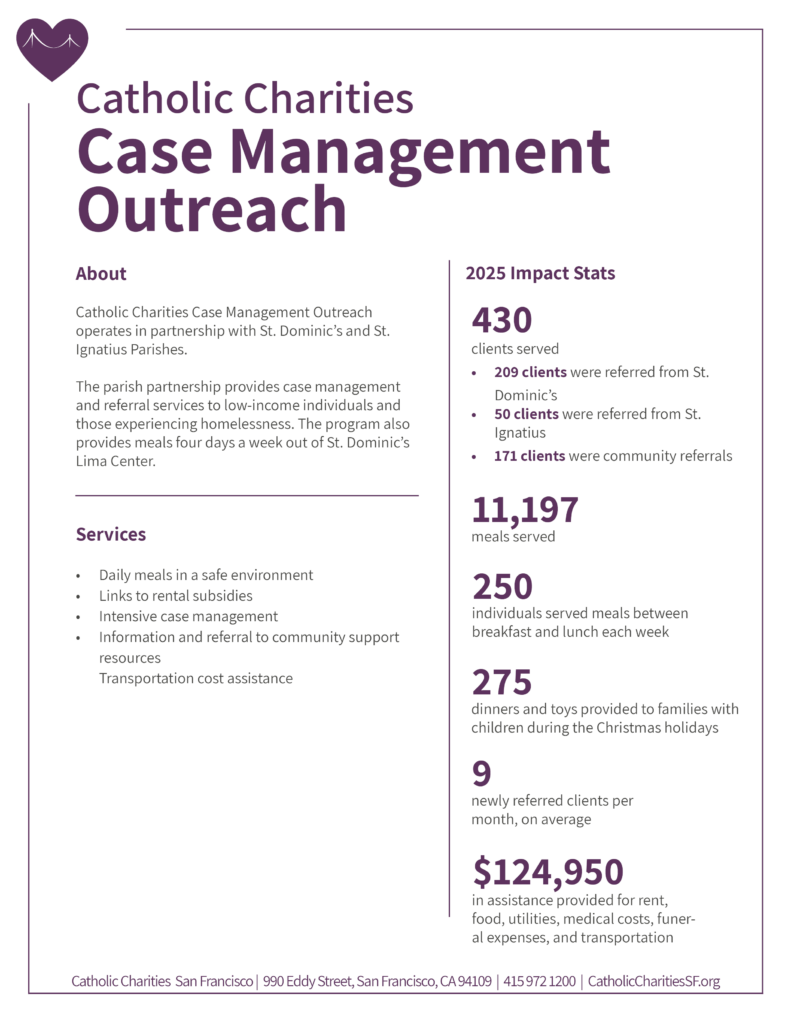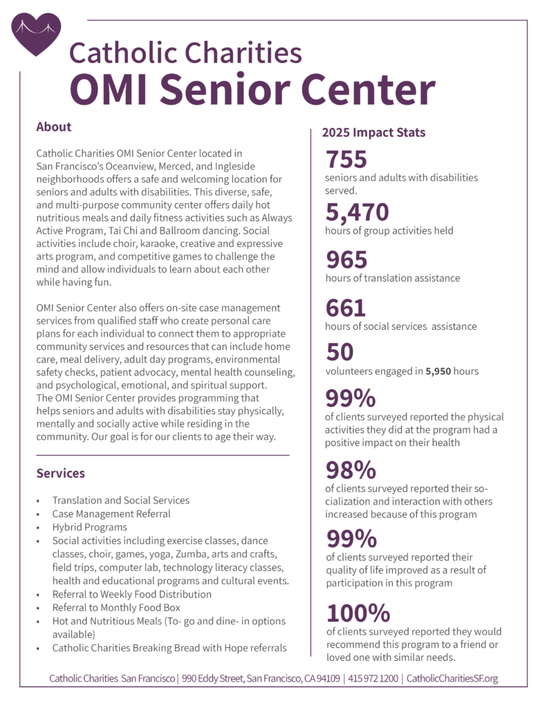 Contact Darlene Wilson at Volunteer@CatholicCharitiesSF.org or call 415-972-1371
